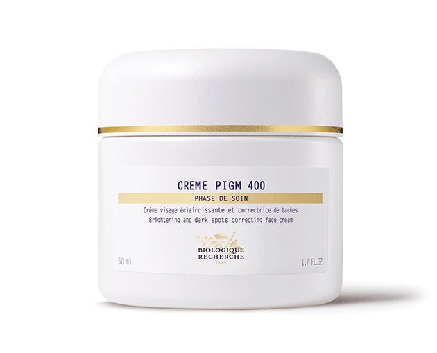 Crème PIGM 400 je koncentrat aktivnih sestavin za posvetlitev polti, zaščito kože in preprečevanje nastanka pigmentnih madežev. Zaradi sestavin z večkratnim delovanjem kot preventivni in korektivni postopek ublaži obstoječe pigmentne madeže in prepreči nastanek novih. Polt naredi sijočo in poenoteno.