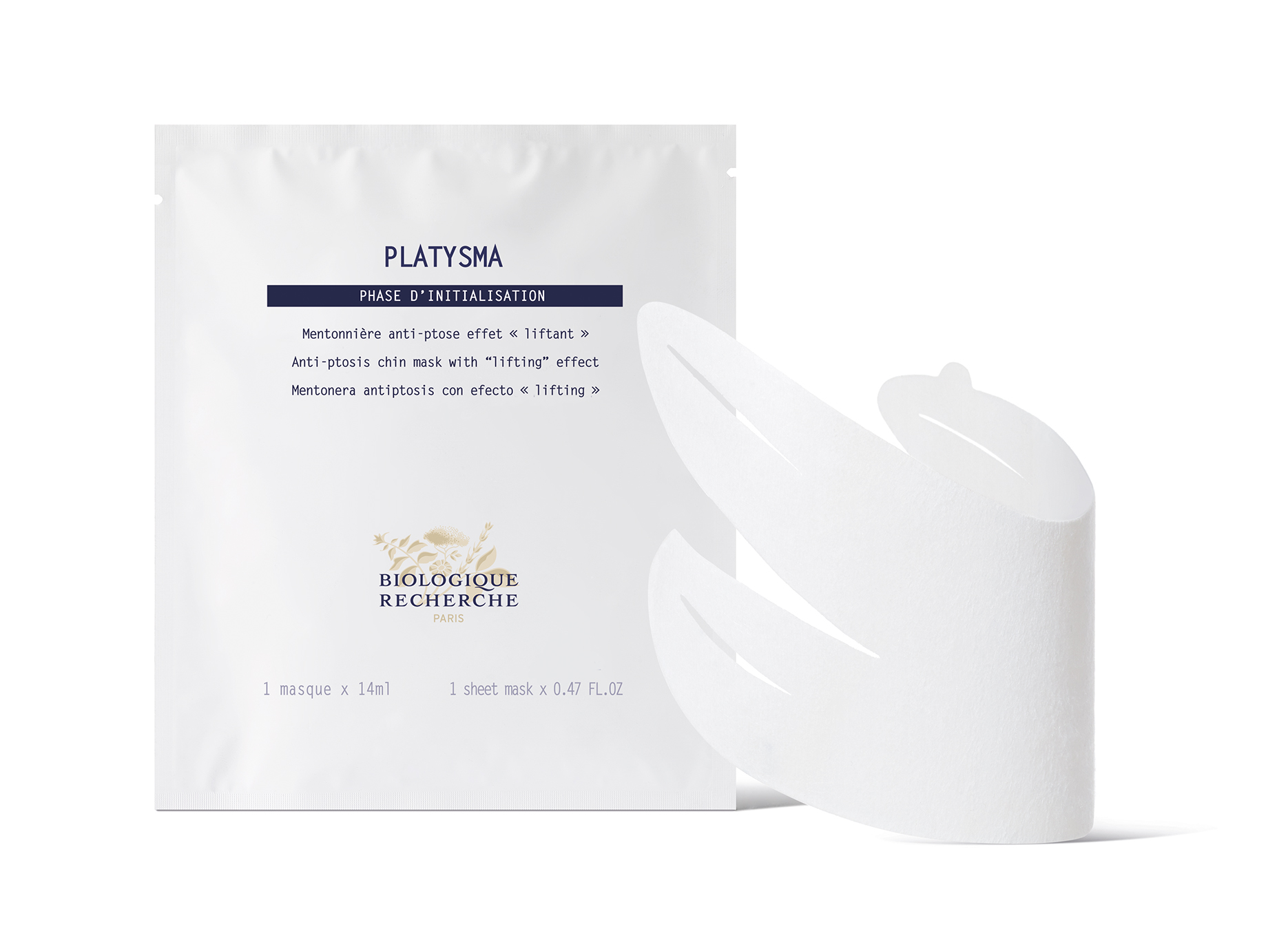 Platysma s svojo edinstveno obliko in raztegljivim materialom, prilagojenim predelu pod brado, hkrati združuje prednosti antigravitacijske maske in maske proti ptozi. Mehansko delovanje podpore v kombinaciji z učvrstitvenimi aktivnimi sestavinami posnema masažo obraza in zagotavlja učinek “liftinga” za napenjanje kože. Konture obraza so na novo definirane, volumen je bolj harmoničen, linija čeljusti je vidno oblikovana in razkriva izboljšani oval.